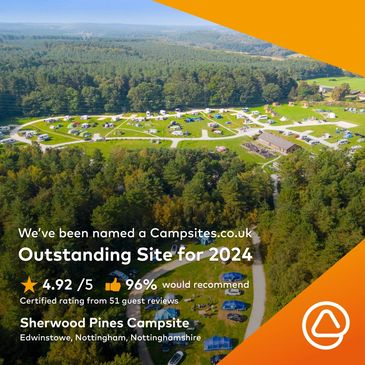 Sherwood Pines campsite, Forestry England's flagship site, spans 20 acres of breathtaking woodland, offering a serene forest retreat, deep within legendary Robin Hood county. Open all year-round, it allows visitors to enjoy the forest's beauty in every season. Whether seeking an adventurous outdoor excursion or a peaceful getaway, the site is conveniently situated near a variety of activities for all interests, including scenic walking and cycling paths, fishing, thrilling adventures, and family-friendly outings. Just a short walk from the Sherwood Pines visitor centre and Go Ape, the campsite provides an abundance of activities for both camping and glamping enthusiasts.